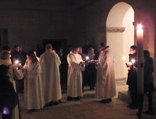 22:00 Uhr | Liturgische Osternachtfeiervom Osterfeuer auf der Klosterwiese durch die ganze Basilika zum Osterfrühstück im Klostersaal,