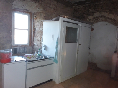 direkt neben der Spüle(siehe nebenstenhendes Bild). Da aber für den endgültigen Zustand gleichzeitig der Schornstein an einen anderen Ort verlegt,dazu Küche und Sanitärtrakt