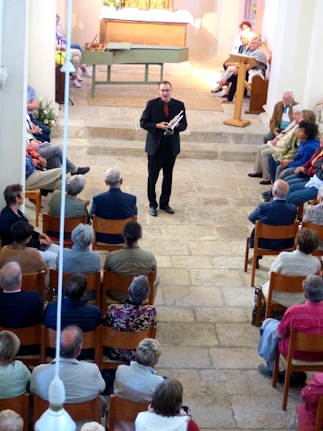 Bilder: rechts oben: Joachim Schäfer beim Pfingstkonzert 2022 links: das Duo Solistico rechts unten: Beim Pfingstkonzert 2017 war das Kaffeetrinken auch gut besucht. |