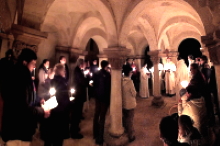 Beginn am Osterfeuer - mit Gesang durch die ganze Basilika |  |